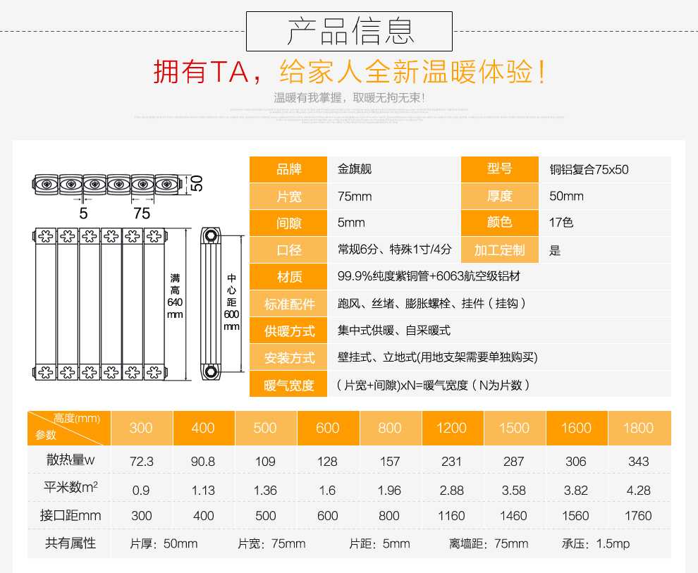 金旗艦銅鋁復合暖氣片質(zhì)保,產(chǎn)品只換不修。