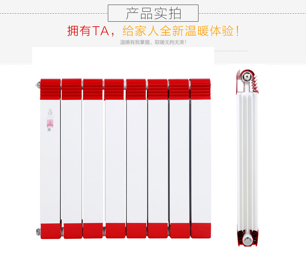 2、散熱性好:鋁的散熱性非常好,銅鋁復(fù)合暖氣片外層以鋁包裹,散熱性非常好。